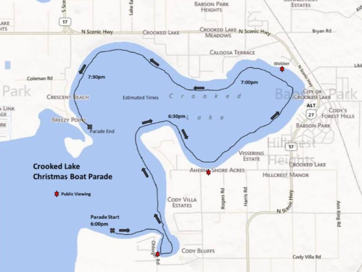 Mark your calendars for the 2022 annual Crooked Lake boat parade- Saturday, December 17 at 6pm. Meet in front of the Crooked Lake Prairie boardwalk. Anyone is welcome to join the parade.